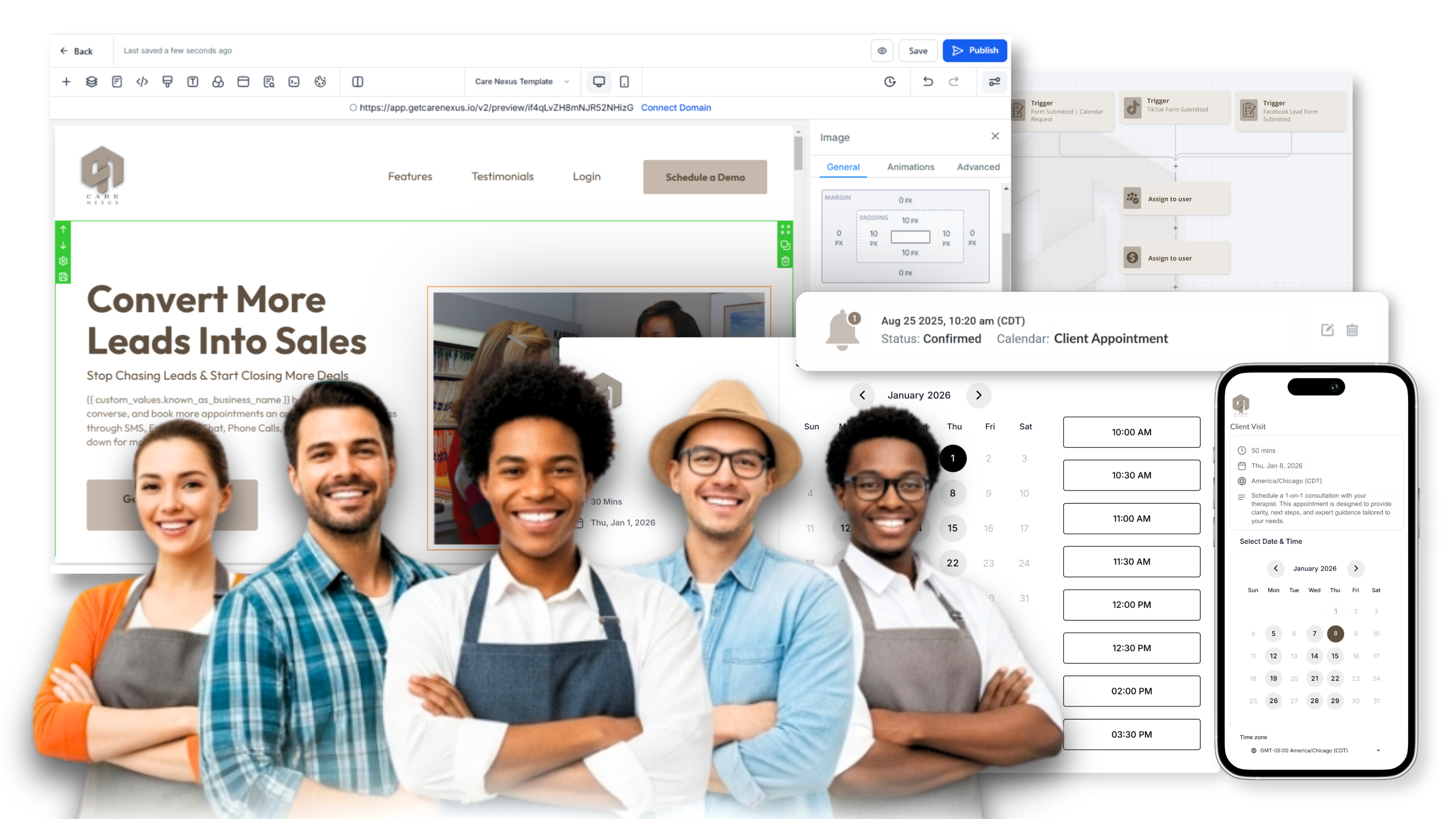 From first inquiry to follow-up, Care Nexus gives small business owners a seamless, compliant way to attract clients, manage revenue and payments, and grow with confidence.
